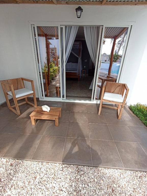 Room size 35 m² features a private entrance, Garden view, Air conditioning, Ensuite bathroom, Sound proofing, Terrace, Free WiFi, Two Beds , Wardrobe, Mosquito net.