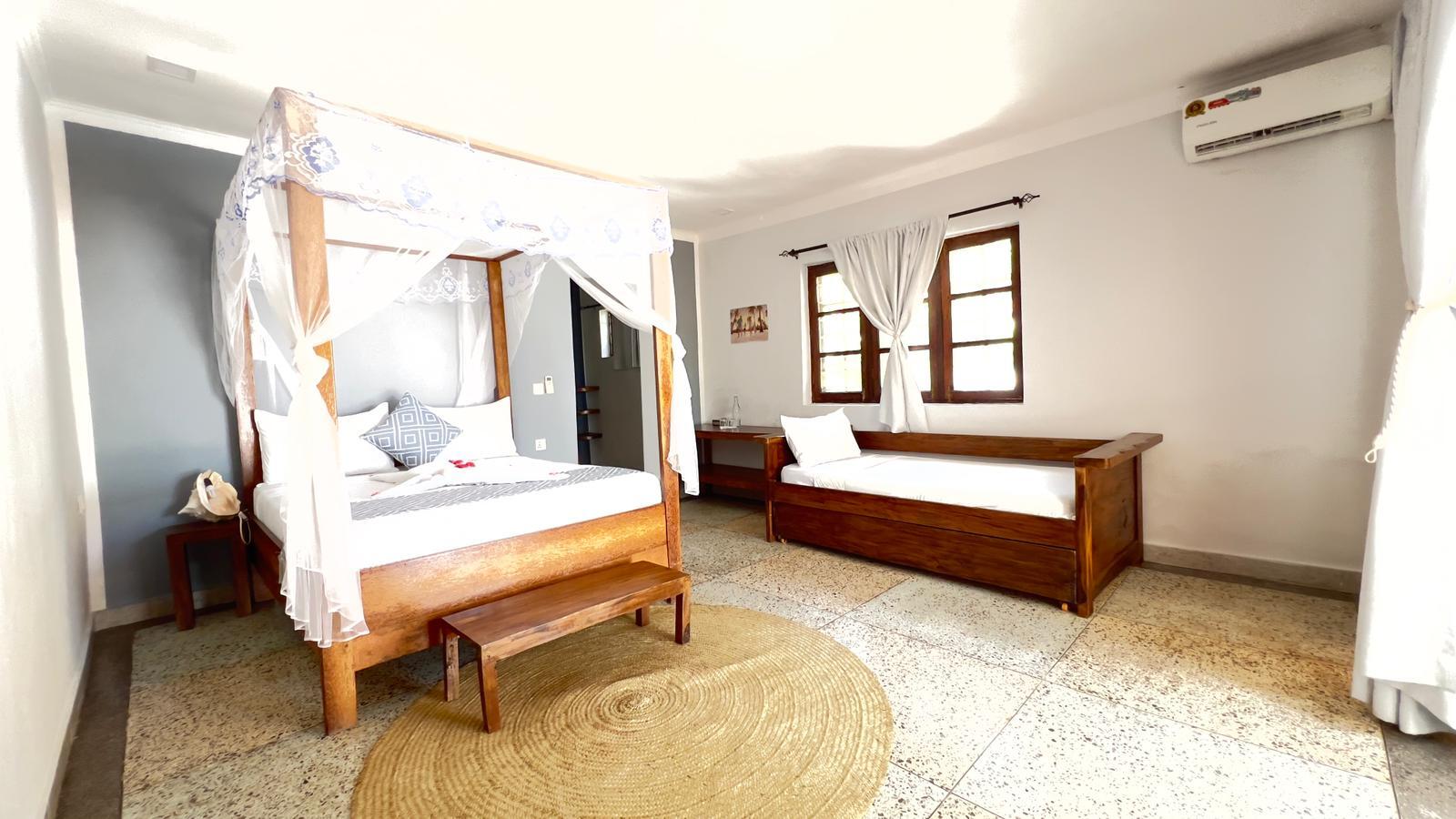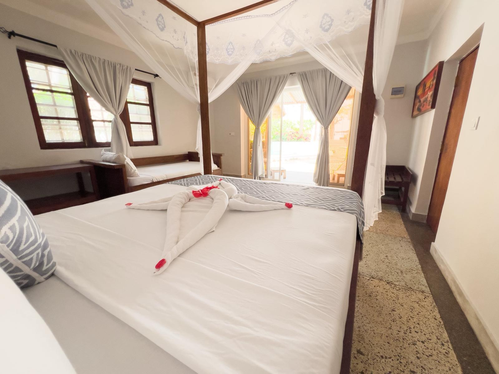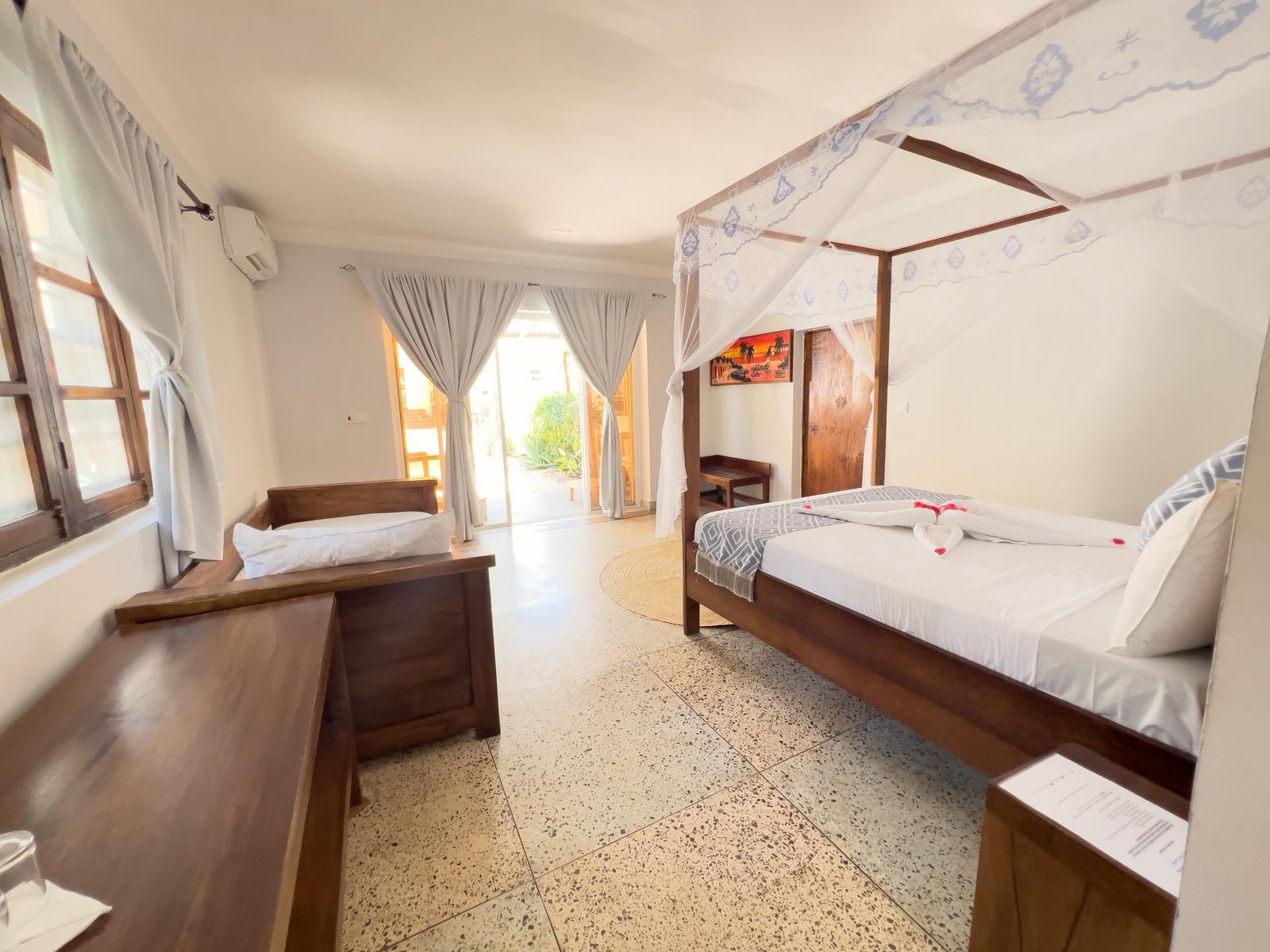 Room size 65 m² features a private entrance, ocean and pool view , air conditioning, Ensuite bathroom, Sound proofing, Terrace, Free WiFi, Two Beds , Wardrobe, Mosquito net.